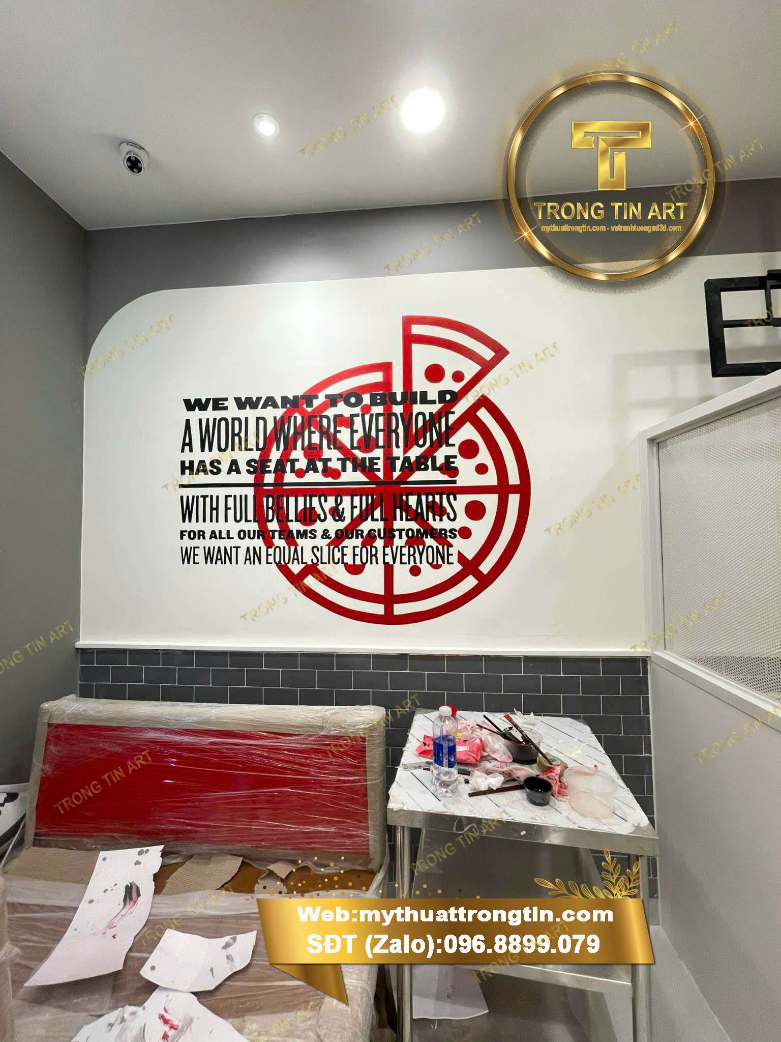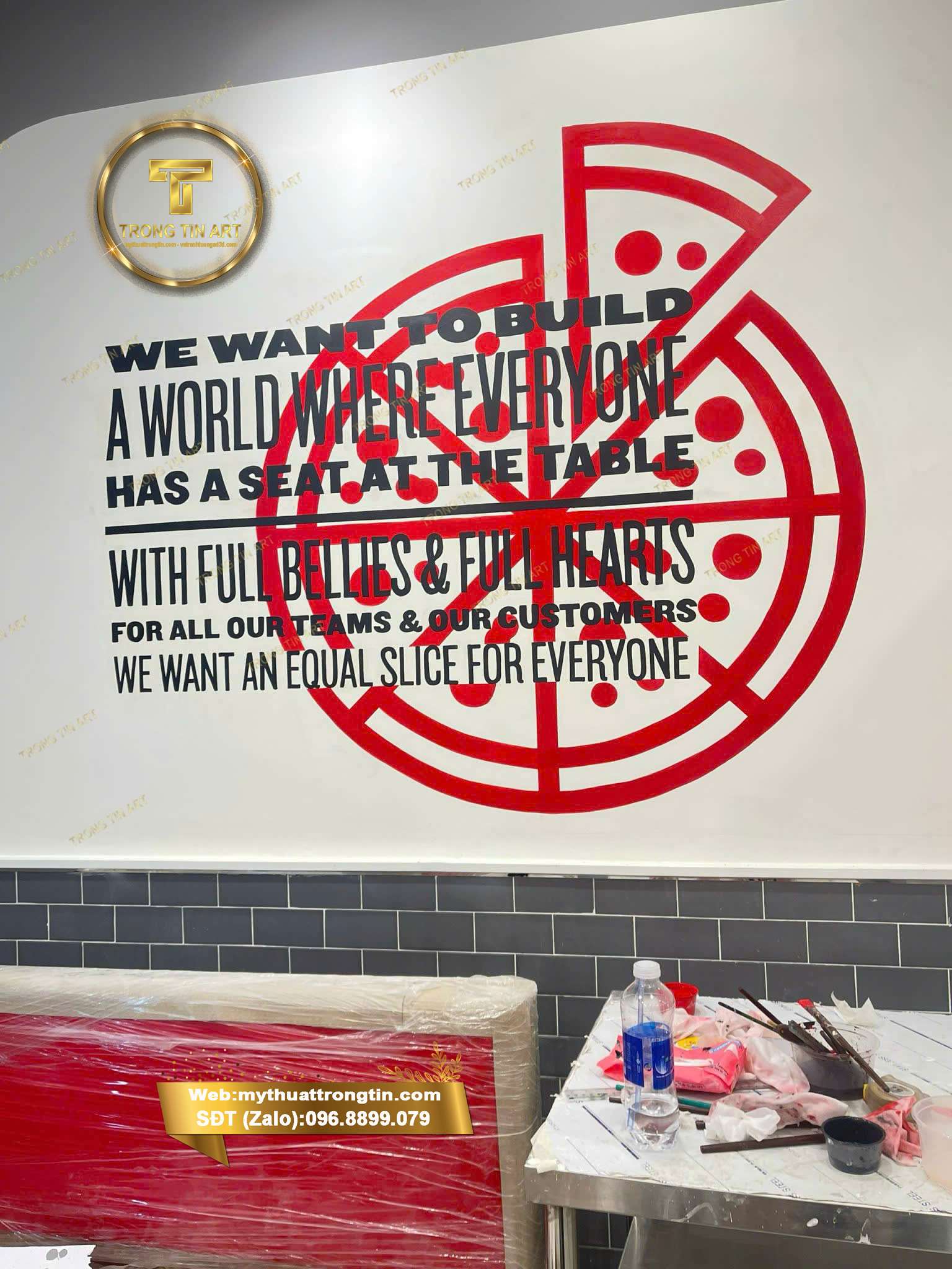 Vẽ slogan nghệ thuật trên tường nhà hàng – Đậm dấu ấn thương hiệu, nổi bật không gian Xem bài viết Tư vấn qua Zalo